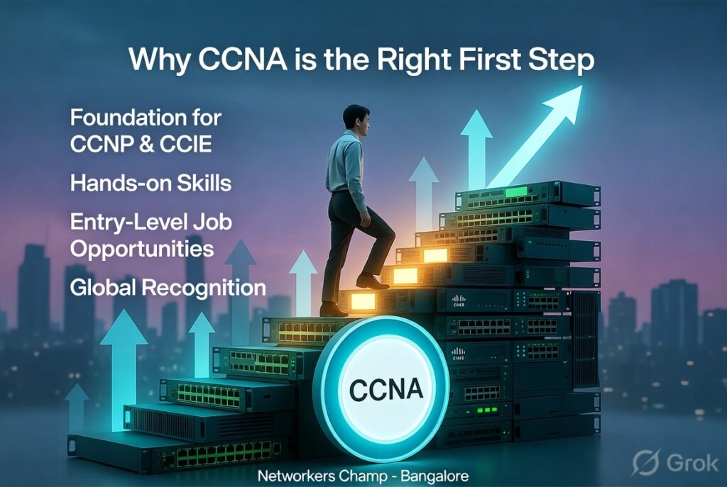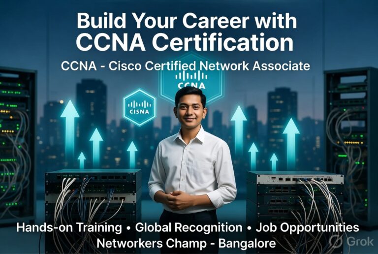 If you’re planning to start a career in networking, the Cisco CCNA networking course in Bangalore at Networkers Champ is the best place to begin. CCNA (Cisco Certified Network Associate) is the most popular entry-level certification that helps you understand how real-world networks operate.